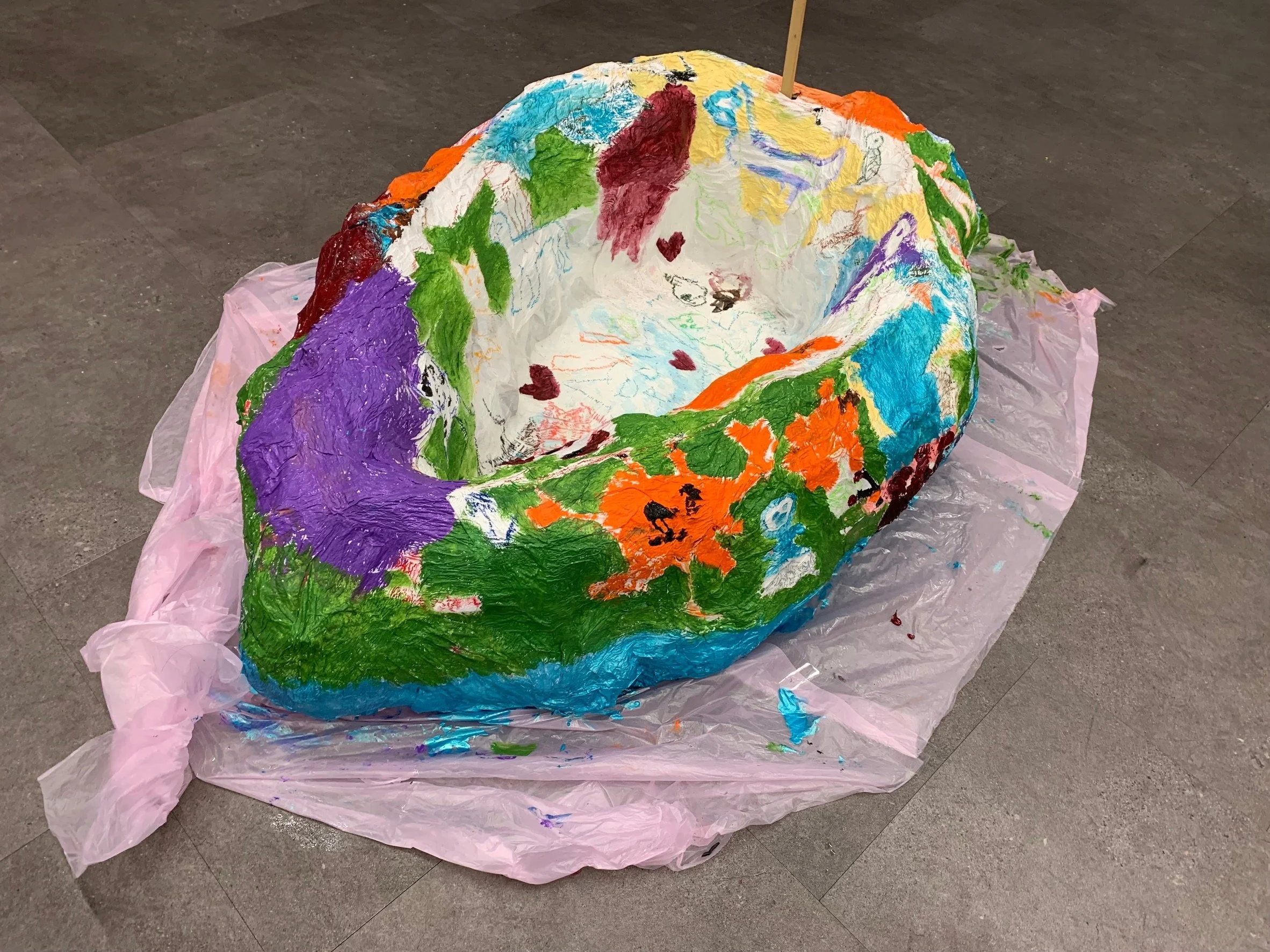 During my personal art exhibition Everlasting Parterre, I initiated a new experimental art course. The participants were children from the after-school program at Shipai Elementary School, most of whom faced psychological challenges. I allowed them to use various mediums, including watercolors, acrylics, crayons, newspapers, recycled materials, etc., to create a boat named 'Noah's Ark.' This symbolized embracing their uniqueness and the courage to embark on a journey towards freedom.